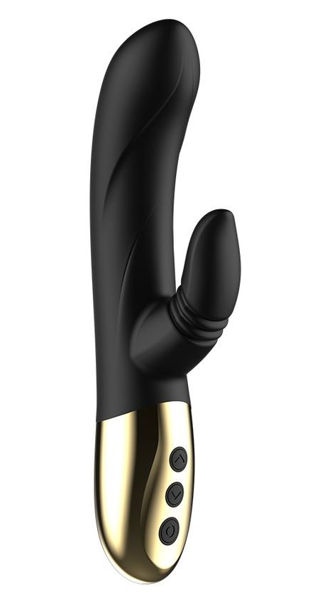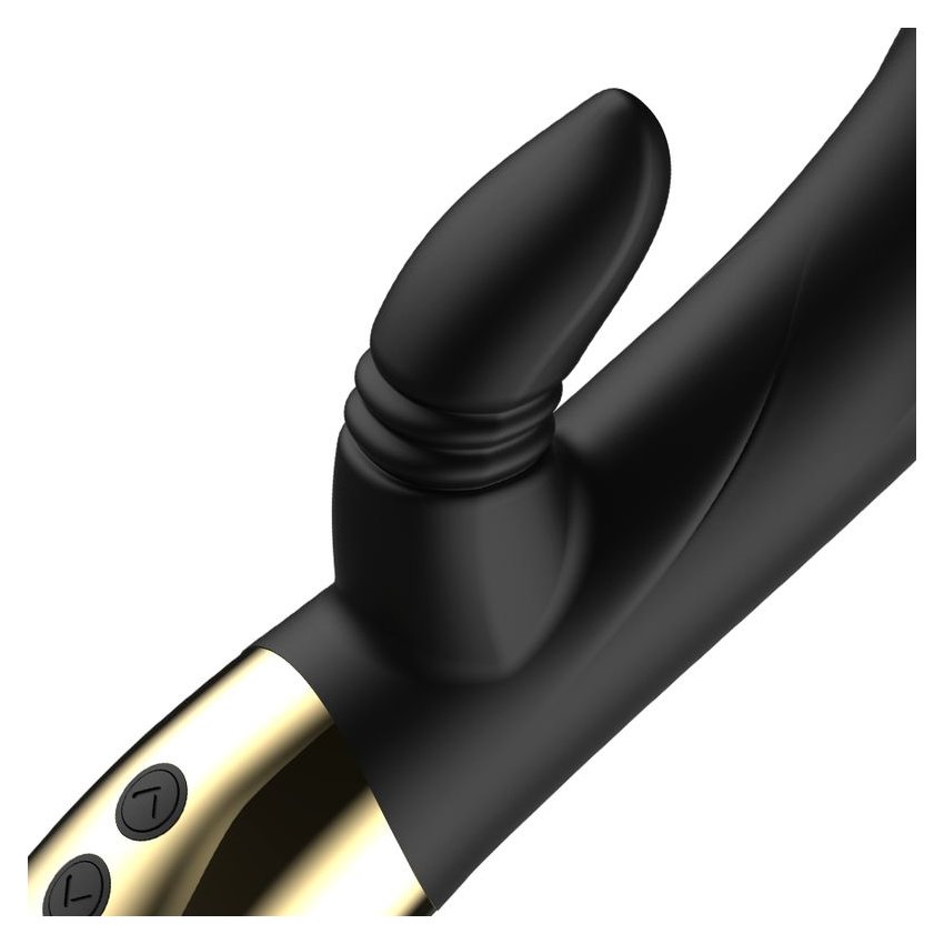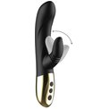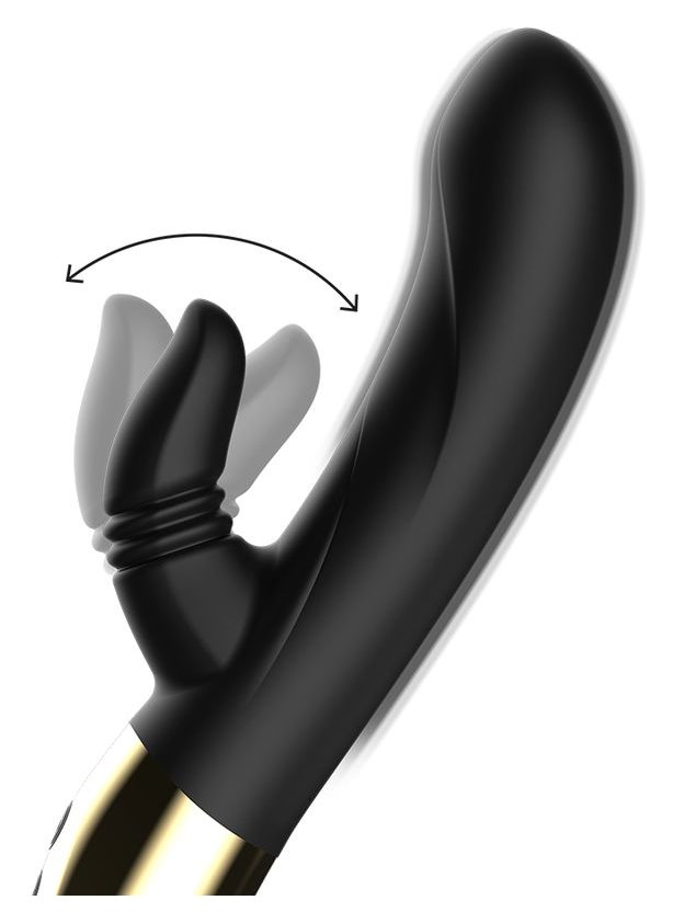 Черный вибратор-кролик с имитацией оральных ласк - 20 см