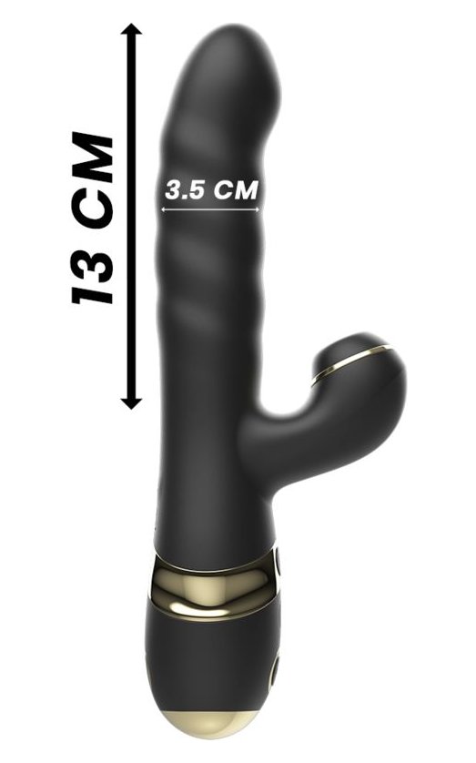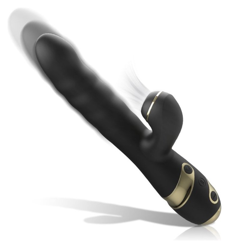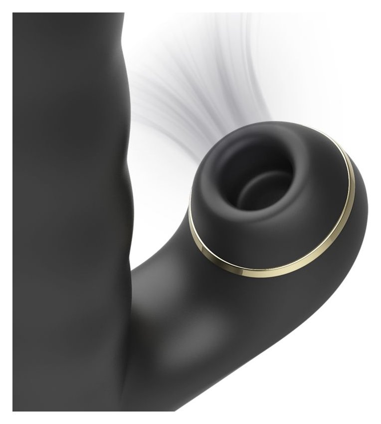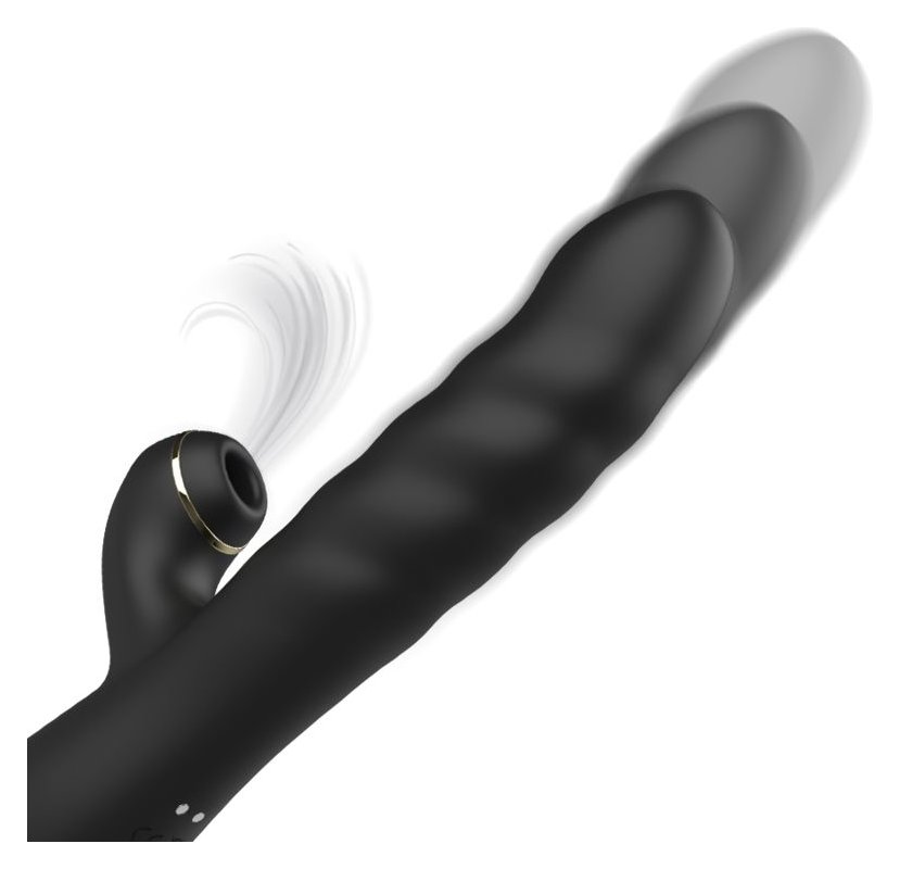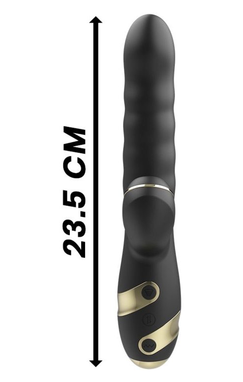 Черный вибратор-кролик с функциями пенетрации и всасывания - 23,5 см