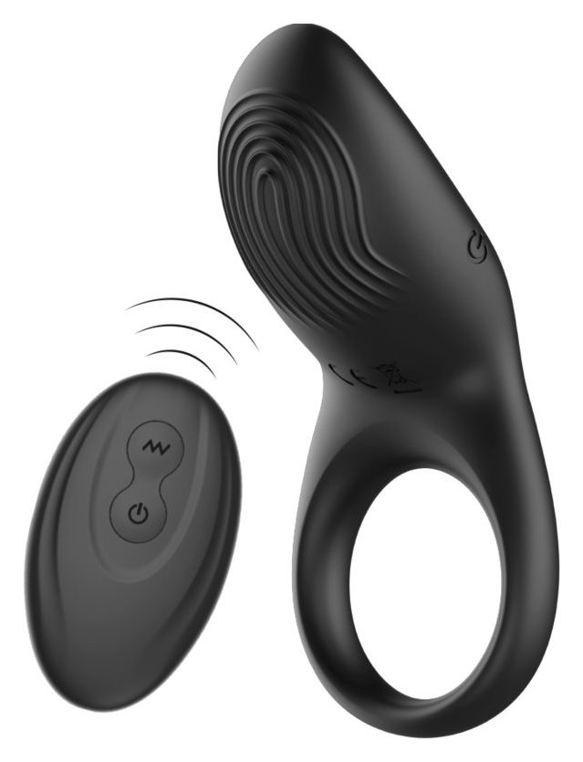 Черное эрекционное виброкольцо с пультом ДУ
