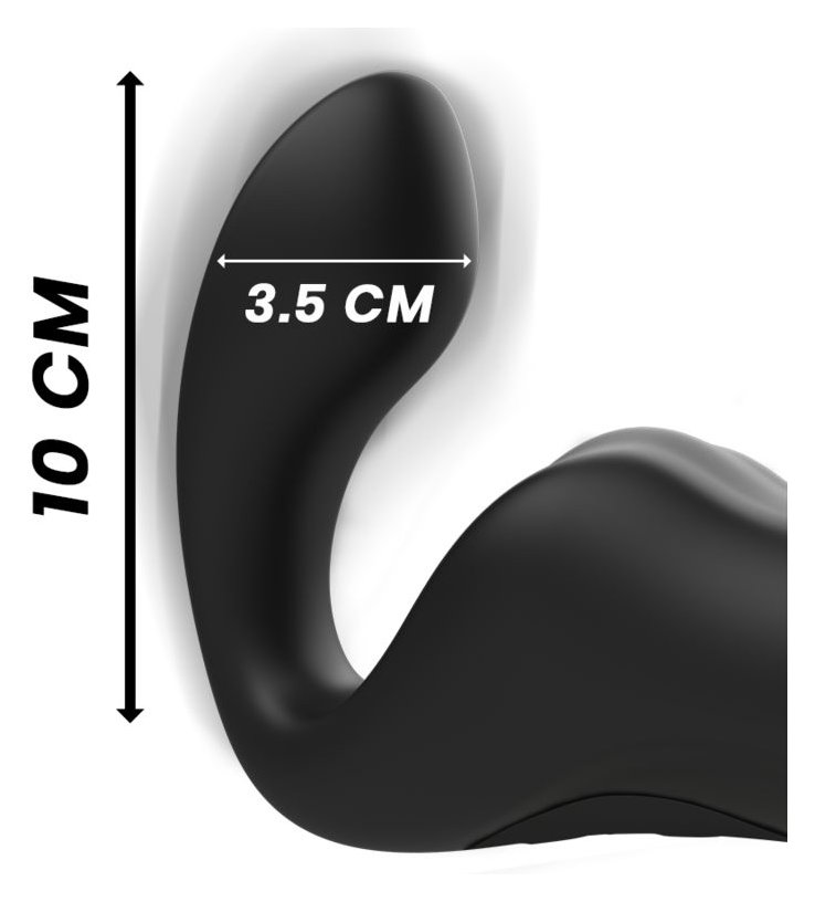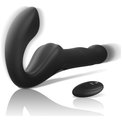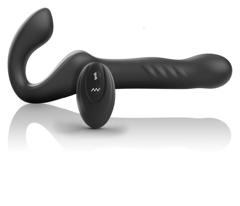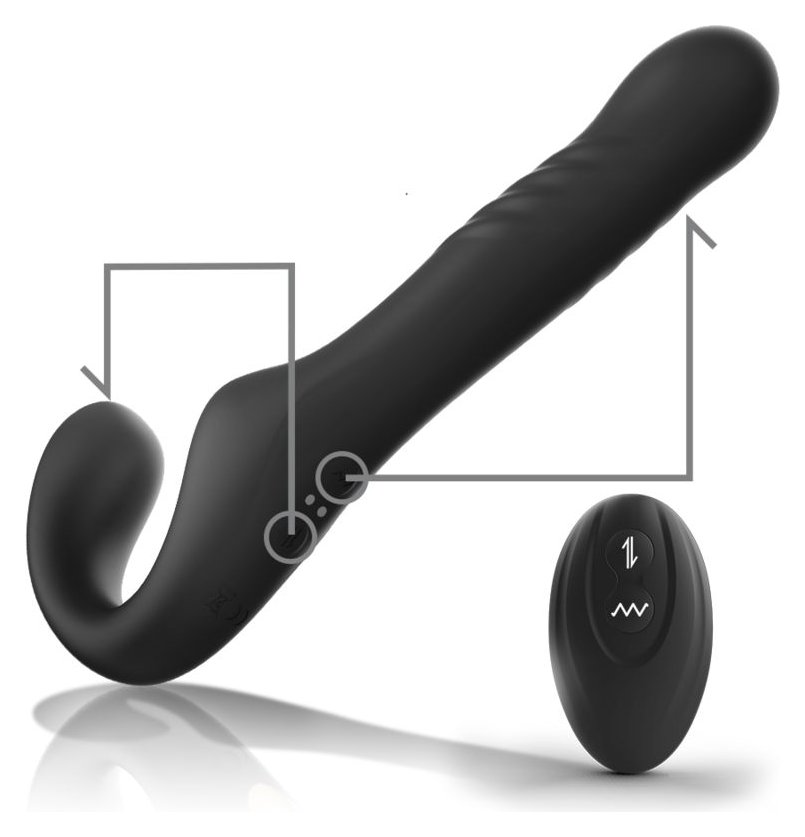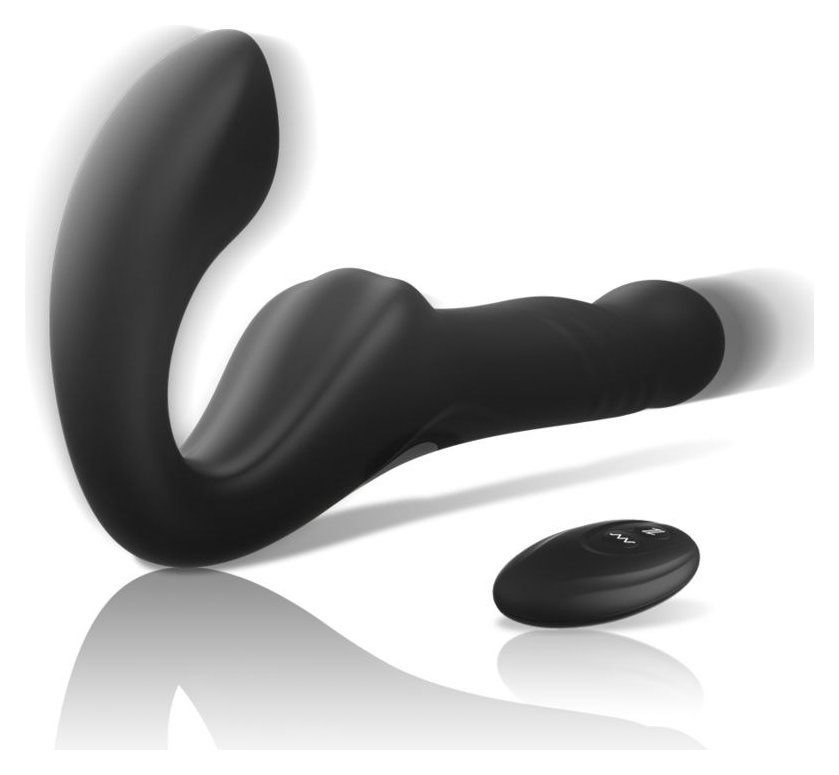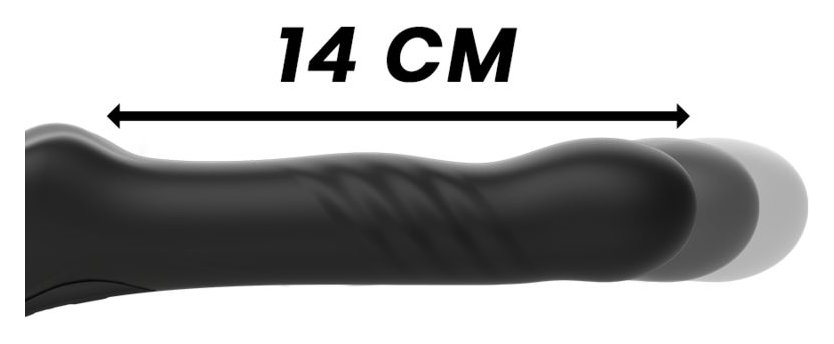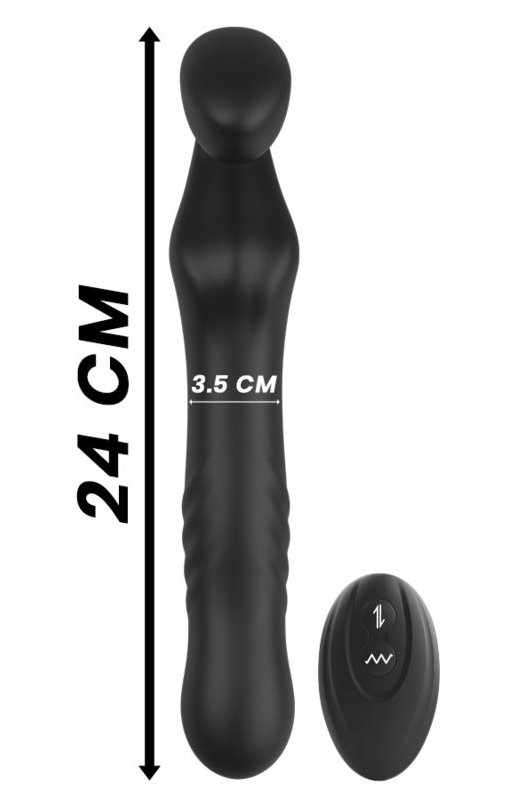 Черный безремневой страпон с вибрацией и возвратно-поступательными движениями - 24 см