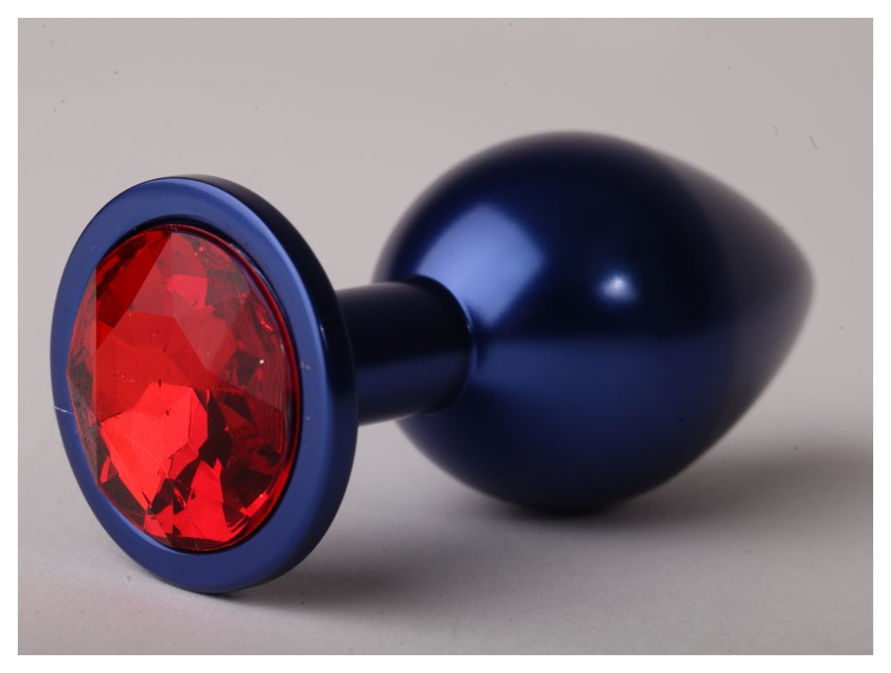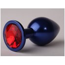 Синяя анальная пробка с красным кристаллом - 8,2 см