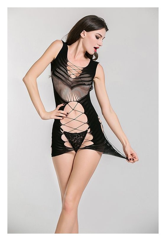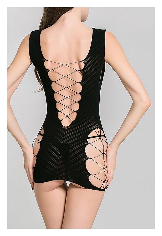 Эффектное сетчатое платье с имитацией шнуровки на животике и лифе