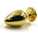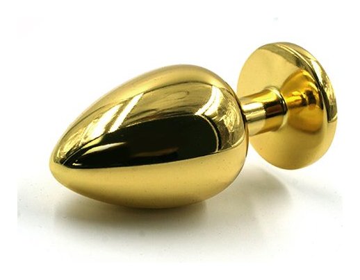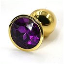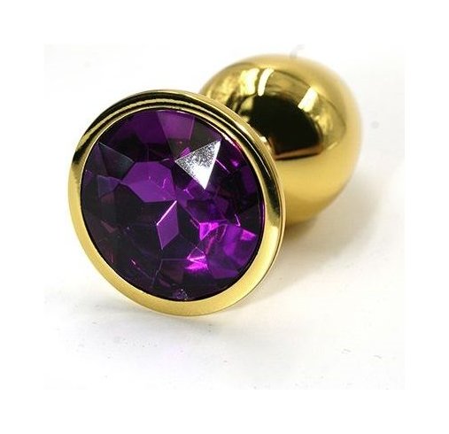 Золотистая алюминиевая анальная пробка с темно-фиолетовым кристаллом - 7 см