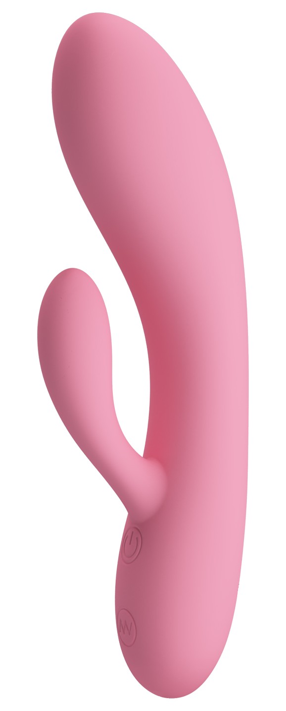 Нежно-розовый вибратор с клиторальным отростком Carol - 16,5 см