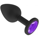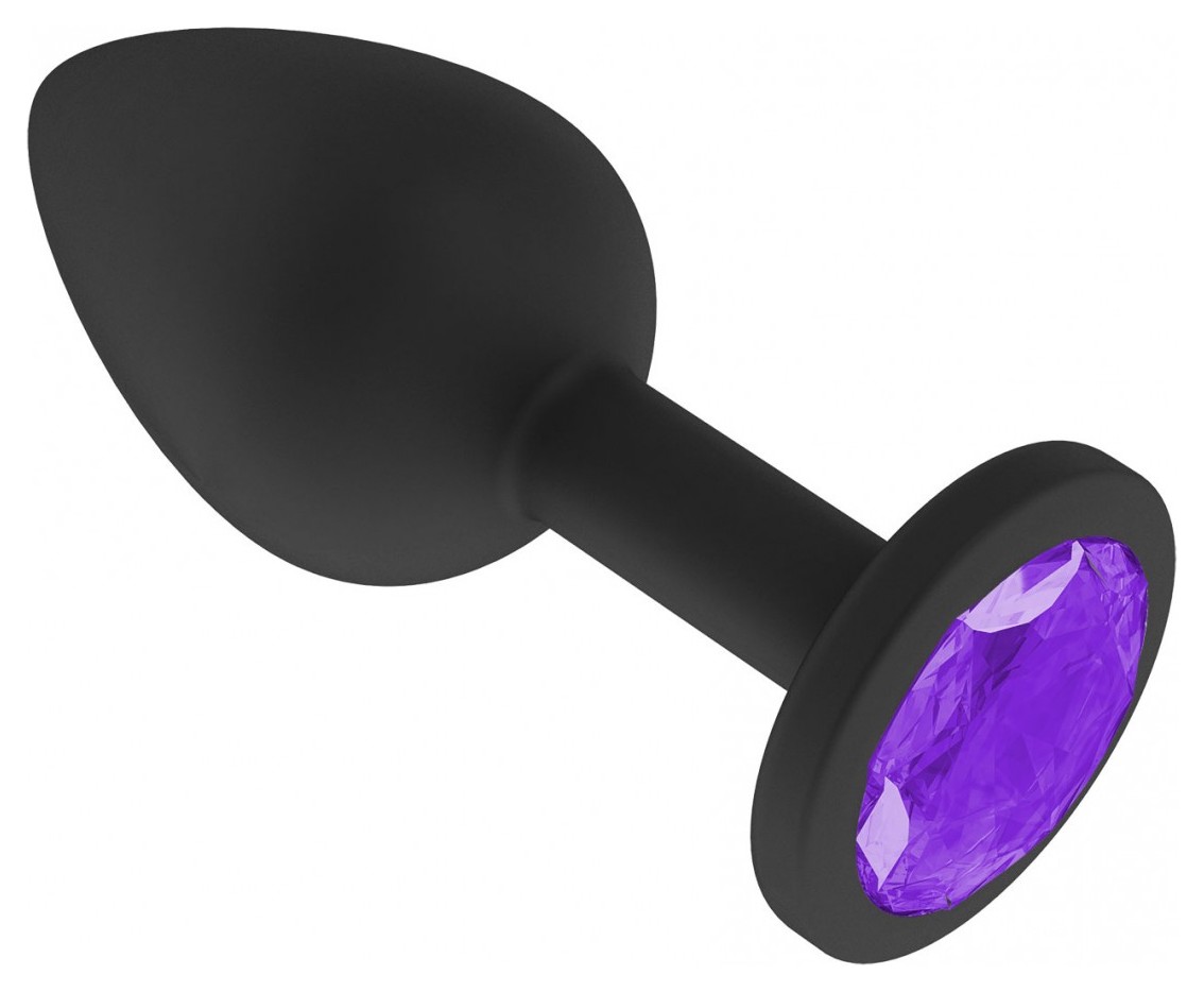 Чёрная анальная втулка с фиолетовым кристаллом - 7,3 см